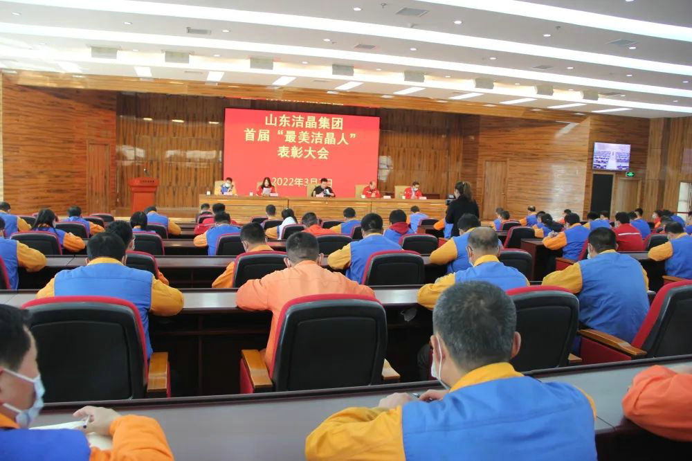 2022年3月7日,潔晶集團召開首屆“最美潔晶人”表彰大會,集團領(lǐng)導為獲此榮譽的職工頒發(fā)獎杯和證書。