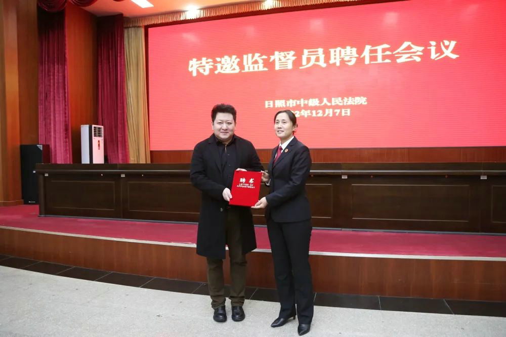 2022年12月7日,日照市中級人民法院召開特邀監(jiān)督員聘任會議,潔晶集團總裁林成彬被聘任為特邀監(jiān)督員并作為特邀監(jiān)督員代表做了發(fā)言。