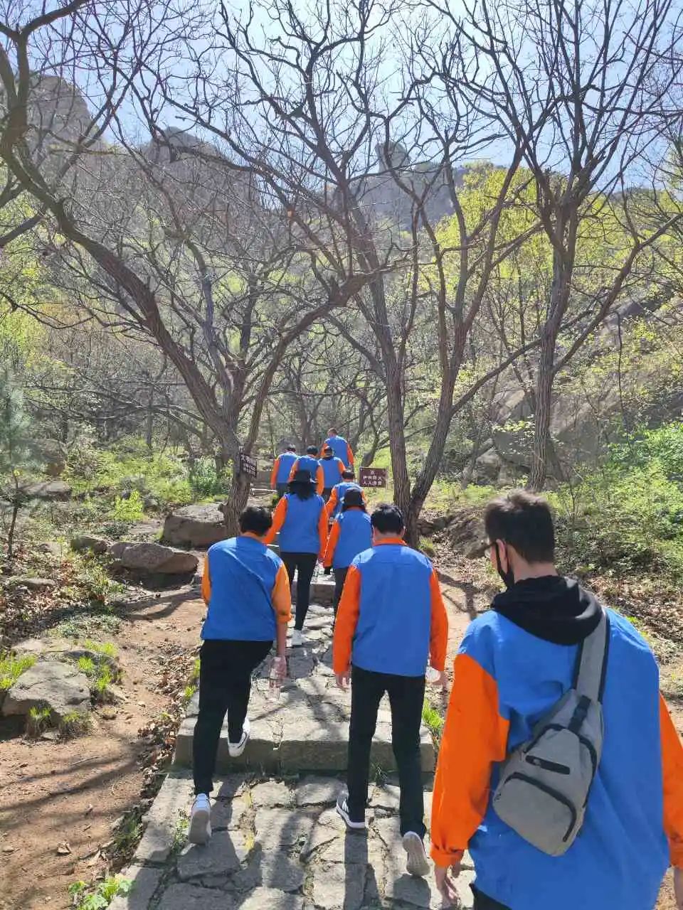10點到達五蓮山風景區西門口,大家在景區的正門臺階前留念合影,并對登山安全注意事項進行了強調提醒。開始爬山啦!大家個個精神抖擻、意氣風發,朝著山頂奮力前進。盡管有個別伙伴由于身體原因使登山的腳步慢了下來,但他們互相加油打氣,繼續向登頂的目標努力著。約1個半小時后,所有人員全部到達峰頂。山風陣陣吹來,吹干了攀登過程中留下的汗水,我們放眼望去,山中所有美景盡收眼底,漫山松翠,層林盡染,格外動人。